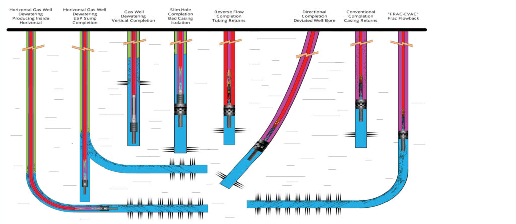 - The commingled production stream returns up the tubing or annulus.